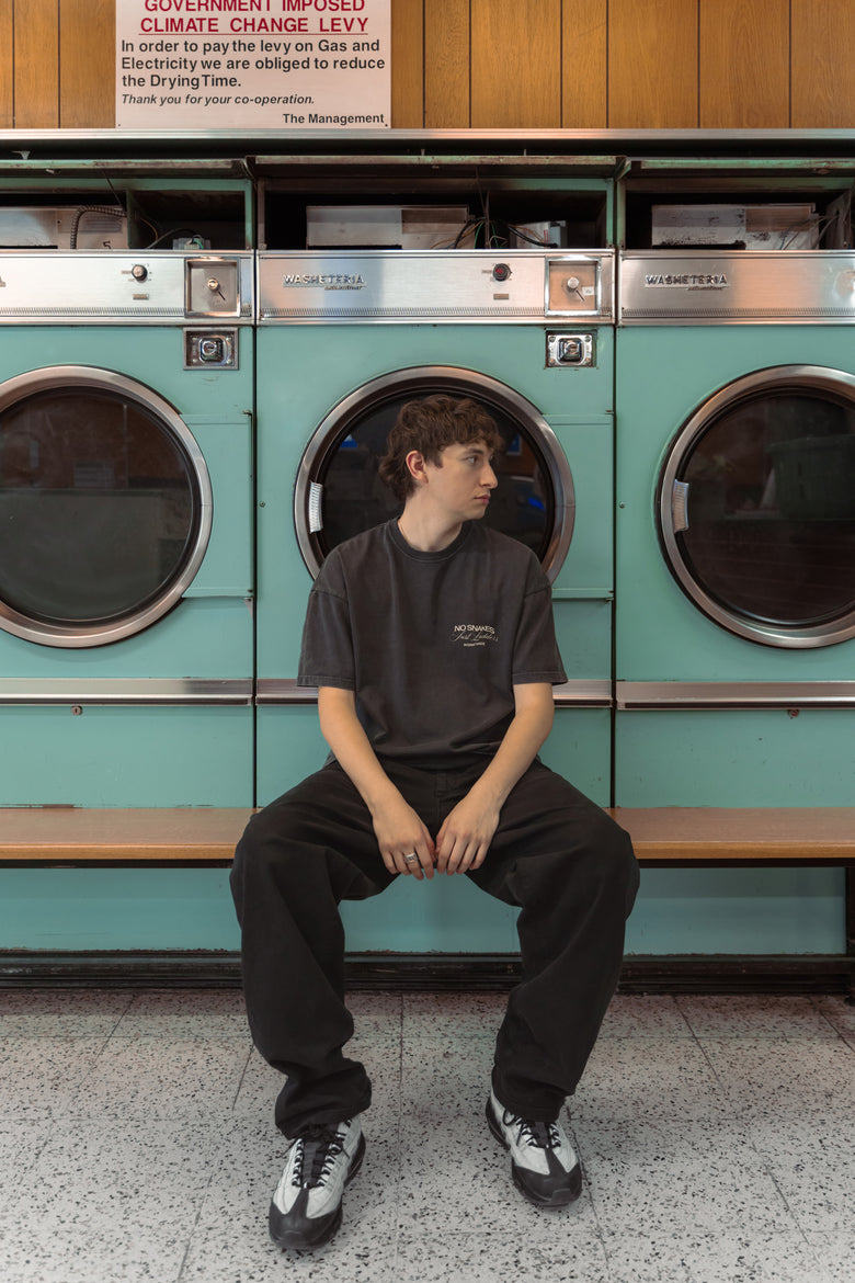 AW25 brings brand new No Snakes Just Ladders. Ouroboros is a concept we’ve wanted to bring to NSJL for a long time, and we’ve finally been able to realise it through a graphic that combines the snakes with our rings logo. The collection builds on familiar silhouettes with new colours, washes, and finishes - a timeless nod to the cycle of creation and destruction.