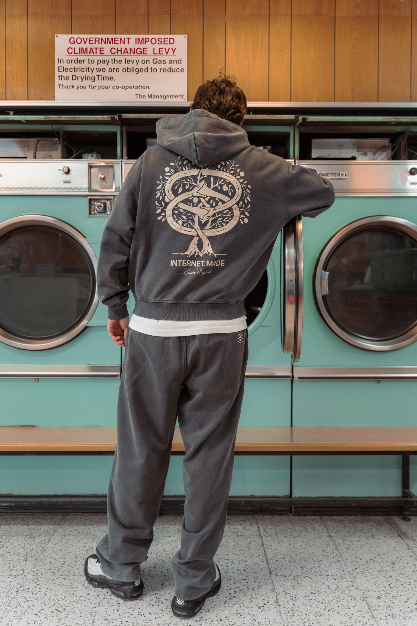 The Ouroboros tracksuit launches in our classic relaxed fit, featuring a boxy cropped hoodie and the return of loose cuffs on the sweatpants. Each piece is manually distressed, then put through a heavy washing process that gives every garment a uniquely aged, lived-in finish. Alongside the tracksuit, the new tees arrive in washed black, washed beige, and white. Each is made from our heavyweight 300gsm cotton and finished with the Ouroboros print on the reverse.